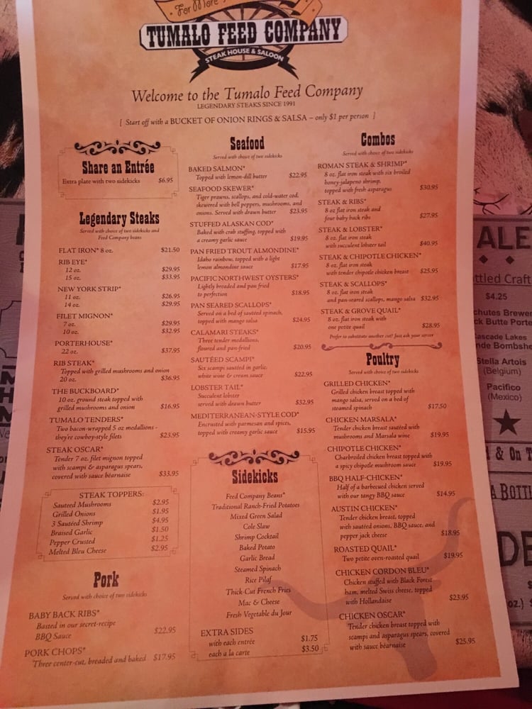 Welcome to Tumalo Feed Co. Steakhouse, where American fare meets a cozy, western-style atmosphere. Nestled in the heart of Tumalo, Oregon, this delightful steakhouse offers a menu that caters to all tastes, featuring everything from succulent steaks to fresh seafood, alongside delectable vegan options.